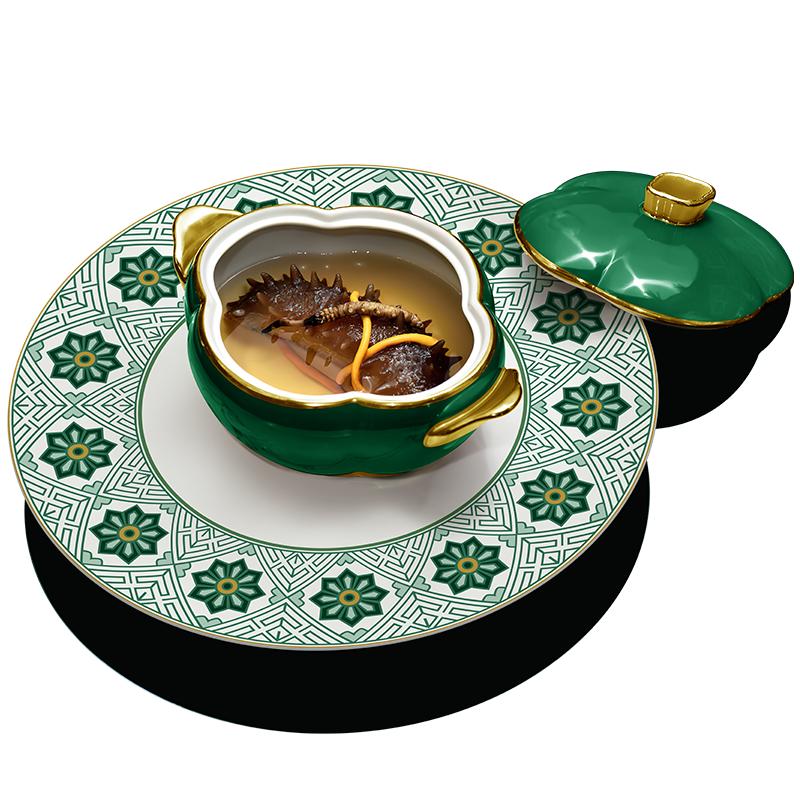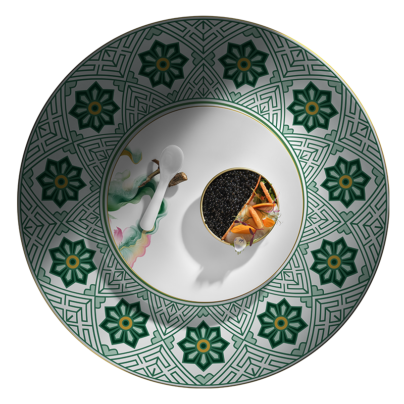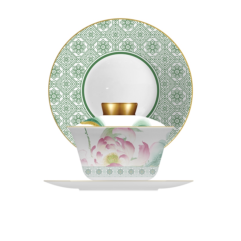 这款陶瓷餐具以其精美的图案设计和优雅的色彩搭配,成为餐桌上的一道亮丽风景。餐具表面采用传统的几何花纹,搭配绿色的花卉图案,既展现了古典之美,又不失现代时尚感。每一个细节都经过精心雕琢,展现出匠人的精湛技艺和对美的追求。