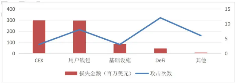 2024年前三季度,全球Web3.0领域共发生安全事件101起,损失总额达22.76亿美元,其中包括4起损失超过1亿美元的重大事件。值得警惕的是,中心化交易所(CEX)成为损失最严重的项目类型,3次攻击造成约2.97亿美元损失,占比40.6%;用户钱包攻击8次,损失2.95亿美元,占比40.3%。
